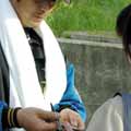 GWを総括してみるに 1.初チャットした メウロコ。目鱗。目からウロコがぴんぴろり〜ん。 面白いですね、瞬時に相手とやり取りするのって。同時に話題が複数上がったりして、片方の返事をうってる間に他の話題で盛り上がってしまい、「待って待って〜」って一人で慌ててみたり(笑) 参加されてた方々には大変お世話になりました。次回は突然叫んだりしません。 2.結婚式の二次会の余興でフラメンコを見た 二次会でフラメンコって、凄くねぇ? 3.愛を貫いた ファイターズ2軍、千葉は鎌ヶ谷球場まで、王子に会いに行って来ました! プレゼントも用意した。タオルとちょこれーと。あいのこくはくをするの。 球場に着くなりそわそわしてたものの、試合の最中に小雨に降られて髪もボサボサ。5月とは思えないくらい寒いし、お目当ての王子は見かけないし、まぁいいか、チョコも皆で食べて帰ろうとあきらめかけていると、 「あれ違う? ほら、腕んトコ、24て書いてあるじゃん?」 ほ? あ? …、あ、あ、ああっ! 王子だ! いたぁーっ! 今日は出ませんとばかりにグランドコートをはおっているものの、ベンチ横でピッチャーとキャッチボールをする王子。実は「王子に会いに」だなんて言ってるけど、本人が2軍の試合にいるかどうかも知らなかったのです。屋内で自主練って事もあるだろうし、2軍だからと言ってここで会えるとは限らないのです。 大ラッキーを釈迦に感謝し、8回には外の球場出口でスタンバイ。 左手にマジック、右手には王子の野球カードを握り締め、足はガクガク、体の先端まで血も行き渡らない冷たい指先。 試合終了後、出口に王子が登場した時にはマジで倒れるかと!(笑) なかなか差し出せなくてオロオロしてたら隣のカメラもったお兄さんが「前に回り込むのがコツ!」と教えてくれました(笑)